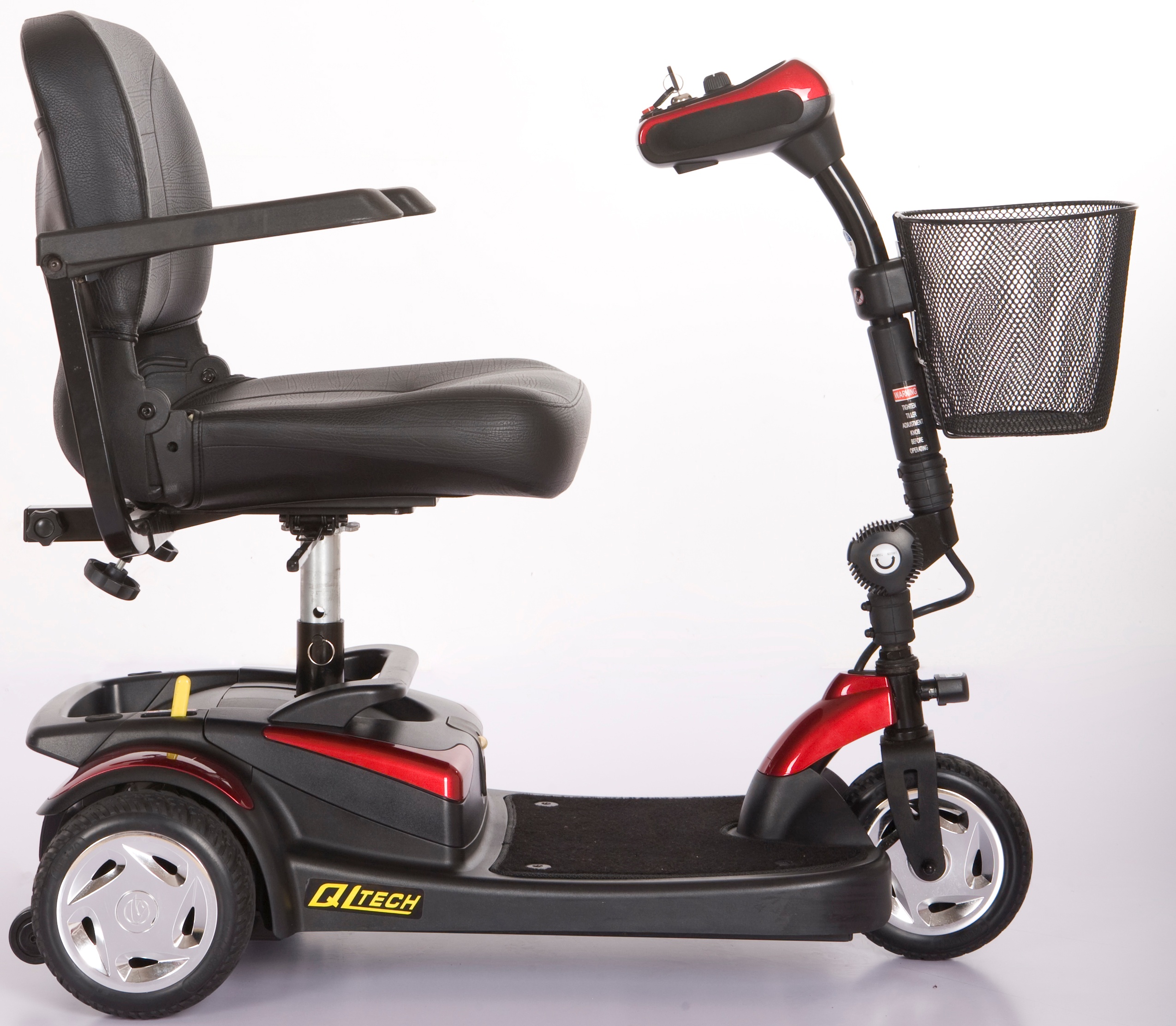 The Quality Life Technologies QS0831BS/0841BS is the smallest, lightest, and most portable scooter to get you were you want to go in comfort and style! Offered in both 3-wheel and 4-wheel models, this sporty design features a lightweight, stadium style seat, a weight capacity of 300 lbs., and increased foot room. It also has a charger port in the tiller and color through shrouds. Enjoy its tight indoor maneuverability and smooth outdoor ride with 2.5”of ground clearance.