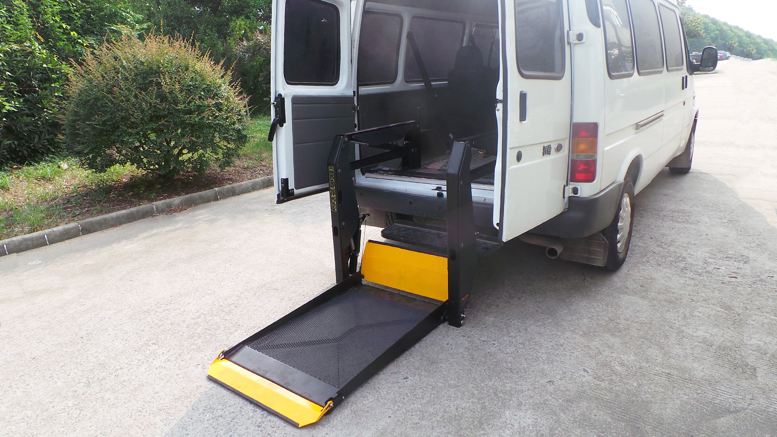 This series wheelchair lift is to provide car-adaptation solutions for people with reduced or limited mobility. It is designed to help wheelchair occupant to get on van while seated on his wheelchair. This wheelchair lift can be installed at the rear door. Powered by hydraulic system, the movement of lifting, lowering and folding are fully automatic. This lift is operated by a wired remote control or by your mobilephone. It also can be operated manually for emergency. It is CE and EMARK certified. Loading capacity is 300kg.