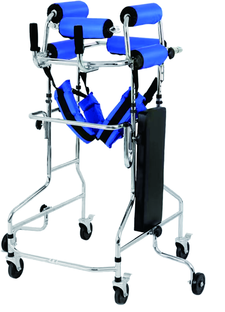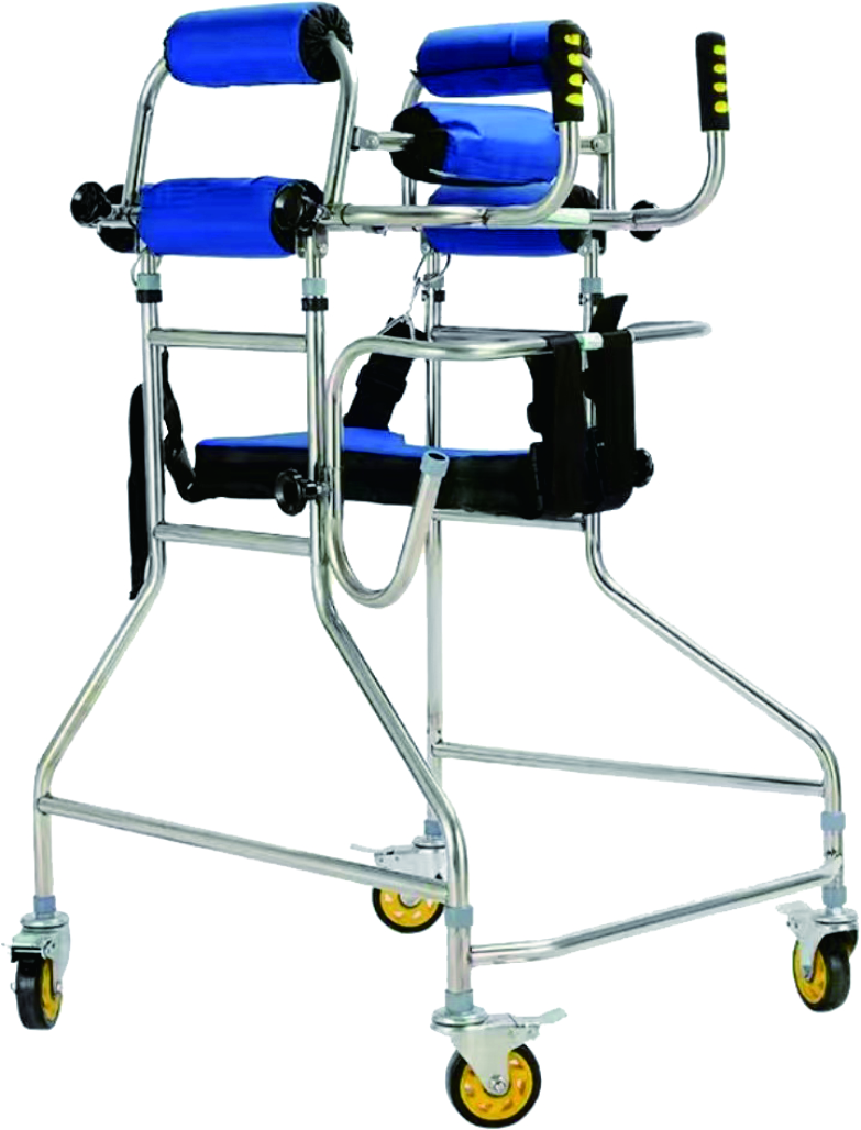 A walking aid is a rehabilitation medical training instrument that helps users maintain an upright posture by fixing the waist and buttocks. It can first allow users to change from sitting position to standing position with the help of others, strengthen lower limb strength, and prevent joint deformation and muscle atrophy.