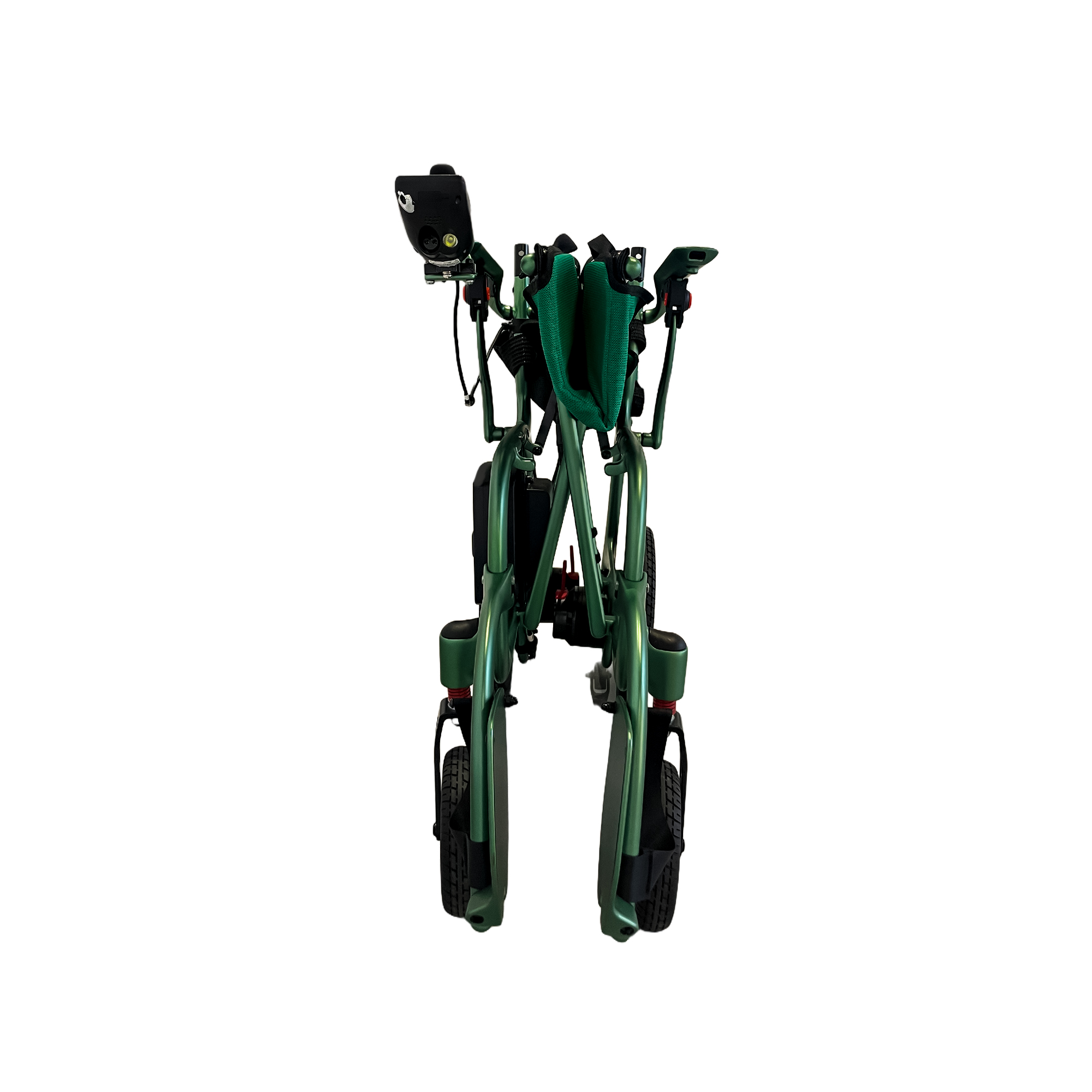 This machine features a one-piece 2mm thick high-strength carbon fiber body (lightweight, portable, corrosion/oxidation-resistant with natural carbon texture and glossy finish), foldable I-shaped frame, ergonomic seat/back cushions (high-strength nylon-mesh with canvas reinforcement, 5000N tensile, soft/breathable), rear-flipping armrests, quick-release footrests, magnesium alloy hub-PU tire wheels with shock absorption, 150W brushless motor with electromagnetic brakes (powerful, energy-efficient), and one-click electric-manual switching with speed display and low-battery braking for safety and convenience.
