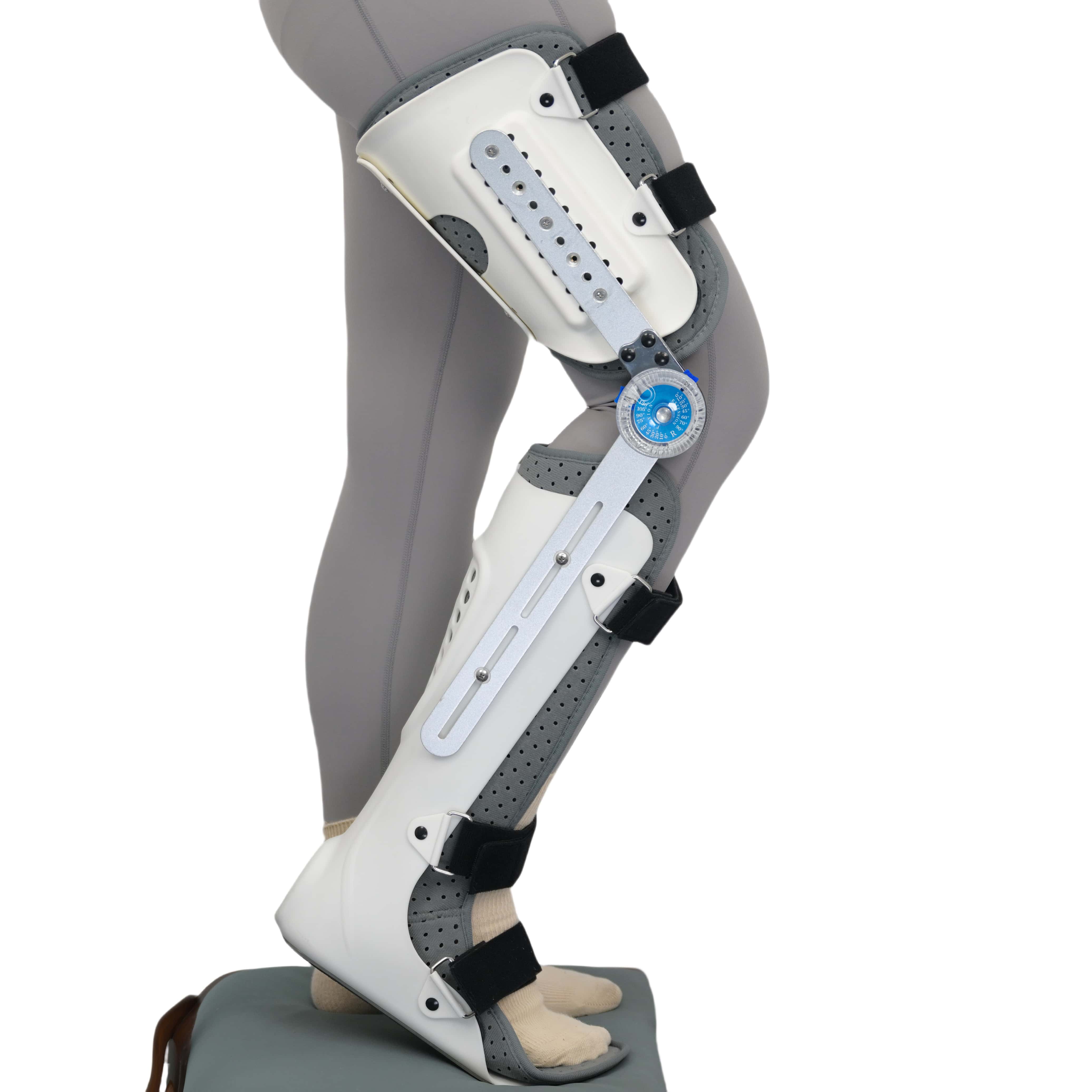 Indications: Tibial plateau fracture, tibiofibular fracture, cruciate ligament injuries, meniscus injuries, knee joint contracture with preventive Features: 1.Double-layer reinforced protective plate,detachable. 2.Dual perforation design enhances breathability and prevents stuffiness. 3.Open-structure hook&loop fasteners for easy wearing. 4.Upgraded non-slip shock absorbing sole.