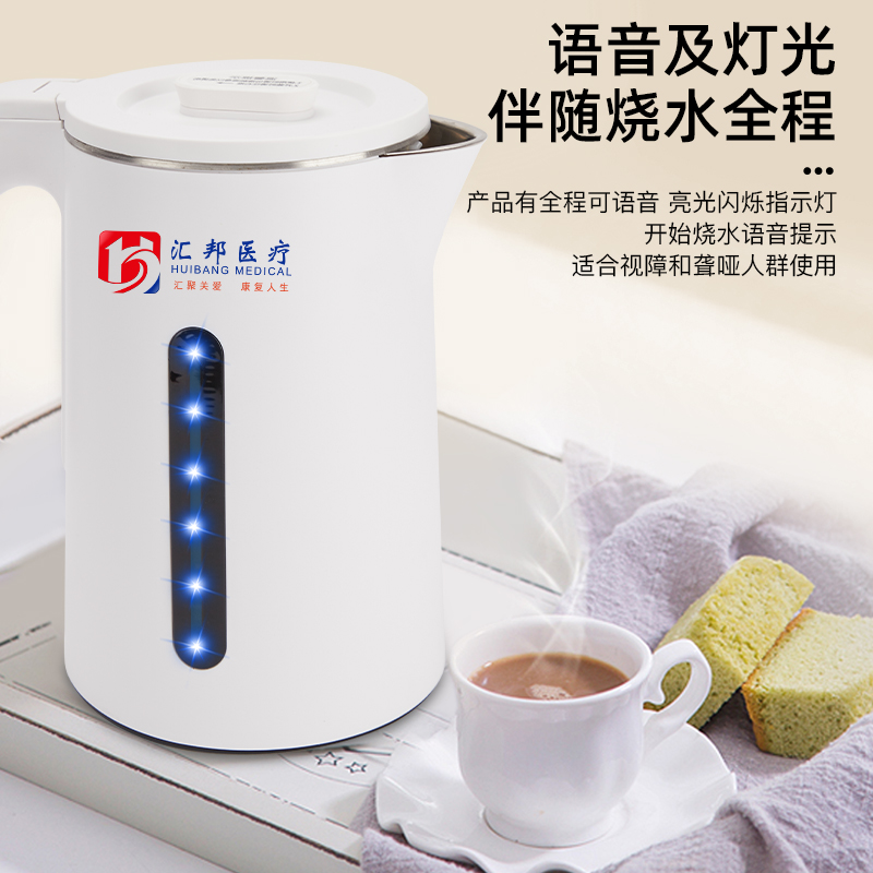 產(chǎn)品由壺身主機(jī)和底盤組成;額定功率:不低于1500W 電壓220V 額定頻率50-60HZ 容量:2L;產(chǎn)品材質(zhì)內(nèi)膽由食品級不銹鋼一體成型,蓋子由304食品級不銹鋼,外殼全新PP料無毒 無異味,質(zhì)感好表面光滑;產(chǎn)品有全程可語音 亮光閃爍指示燈,開始燒水語音提示;產(chǎn)品獨(dú)立開關(guān)上面有開關(guān),簡單易操作 一鍵操控;水壺主體采用雙層防燙設(shè)計(jì),適合視障人士使用,使用更安全;
