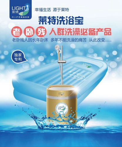 洗浴寶:專為老、臥、殘、孕人群設(shè)計,改變傳統(tǒng)擦洗模式,感受淋浴帶來的舒適。 安全:洗澡機內(nèi)部裝有蓄電池功能,可斷電使用。 方便:不用移動使用者,在自己睡覺的床上解決洗澡。洗澡床可折疊,占地小,一個人就可以操作。 衛(wèi)生:用流動的水洗澡,洗頭、洗臀不會二次污染。 成本:每天只需1度電,徹底清潔全身。 專利證書產(chǎn)品,國家級檢測報告,CE認證,獲得2018中國國際福祉博覽會誒加創(chuàng)新產(chǎn)品銀獎