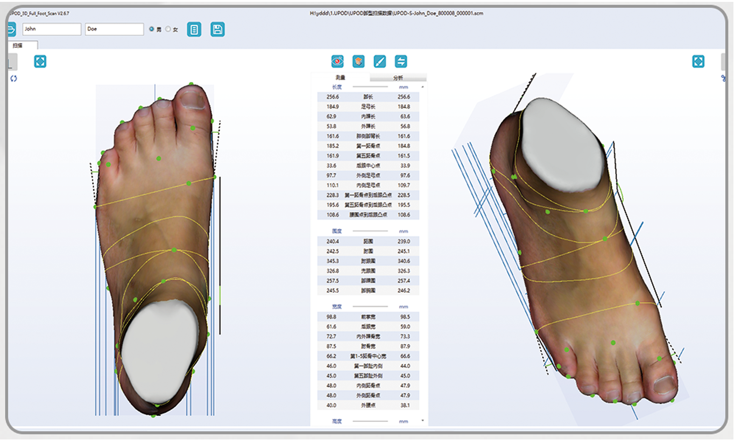 可對(duì)人體腳型、鞋檀檀型進(jìn)行三維掃描,掃描足部真實(shí)顏色,采集高精度腳型和檀型3D數(shù)據(jù),并生成幾十組個(gè)性化參數(shù),支持上傳與下載,單腳掃描僅需“3秒”,廣泛用于制鞋產(chǎn)業(yè)與醫(yī)療康復(fù)領(lǐng)域