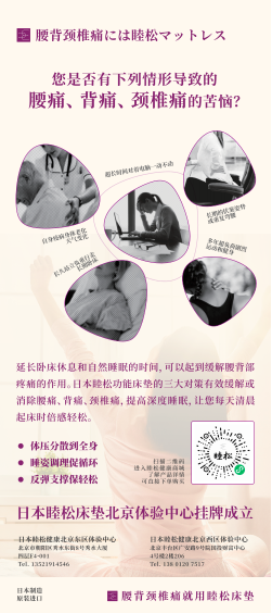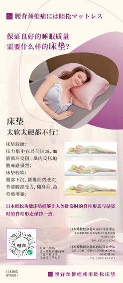 日本睦松床墊產(chǎn)品特點(diǎn): 1)睦松功能床墊提供20年持續(xù)穩(wěn)定的反彈支撐,保證脊柱在睡眠過程中始終保持自然彎曲狀態(tài),讓身體始終處于放松的狀態(tài); 2)睦松功能床墊出色的軟硬度和適度的下沉設(shè)計,可以矯正因白天活動帶來的脊柱異位和變形; 3)睦松功能床墊易翻身的特點(diǎn)減少睡眠中消耗的體力,提高深度睡眠比例,讓第二天精神倍加; 4)睦松功能床墊兼具透氣性和身體貼合性,讓身體在睡眠中始終處于溫度平衡狀態(tài), 減少感