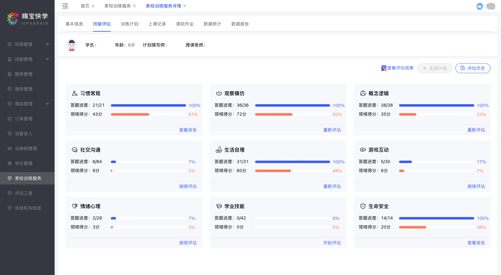 嗨寶快學作為兒童康復機構的數(shù)字化教學系統(tǒng),為康復機構與老師提供包括兒童能力評估、康復教學實施、教案生成、數(shù)據(jù)記錄、課后作業(yè)管理等服務,提高老師工作效率,協(xié)助機構線下康復服務數(shù)字化。