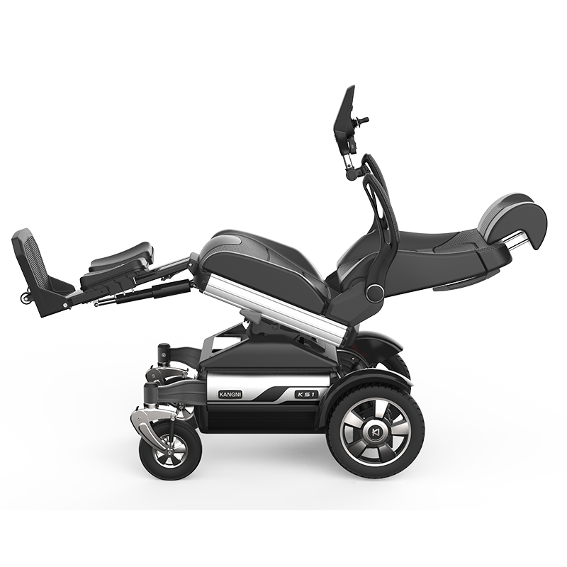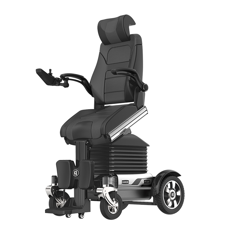 KS系列智能康復(fù)訓(xùn)練型電動輪椅,填補(bǔ)了國內(nèi)高端電動輪椅車的研發(fā)空白,輪椅通過腳踏、座椅面、靠背角度電動調(diào)節(jié),調(diào)整舒適度,滿足不同坐姿的需求。 康尼KS1系列智能電動輪椅具有12項核心功能:腳踏、靠背、座椅調(diào)節(jié)、自平衡、電動升降、電動逍遙、手動/電動旋轉(zhuǎn)、一鍵助站助坐、越障、遠(yuǎn)程求救、云智能、無線遙控等功能。