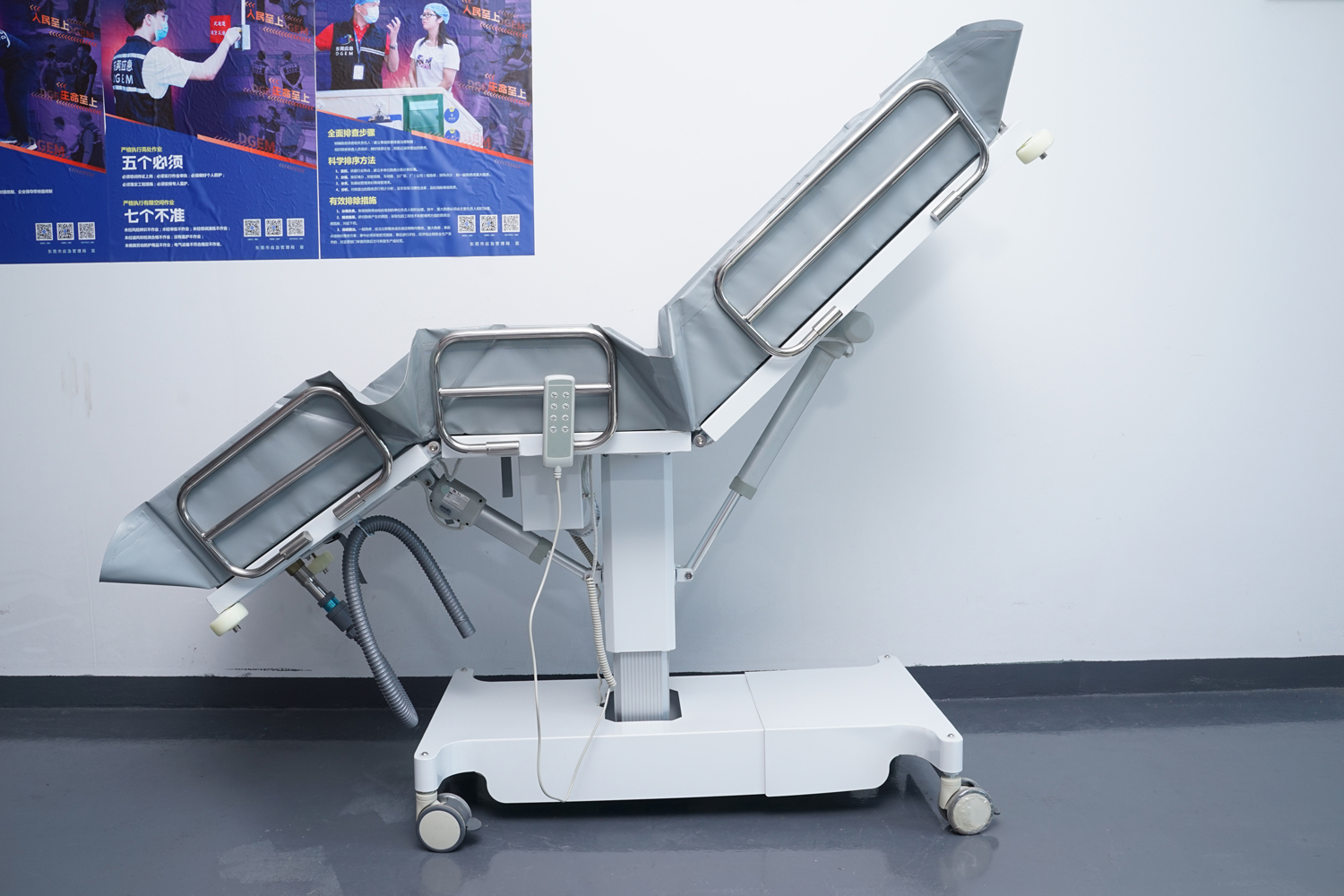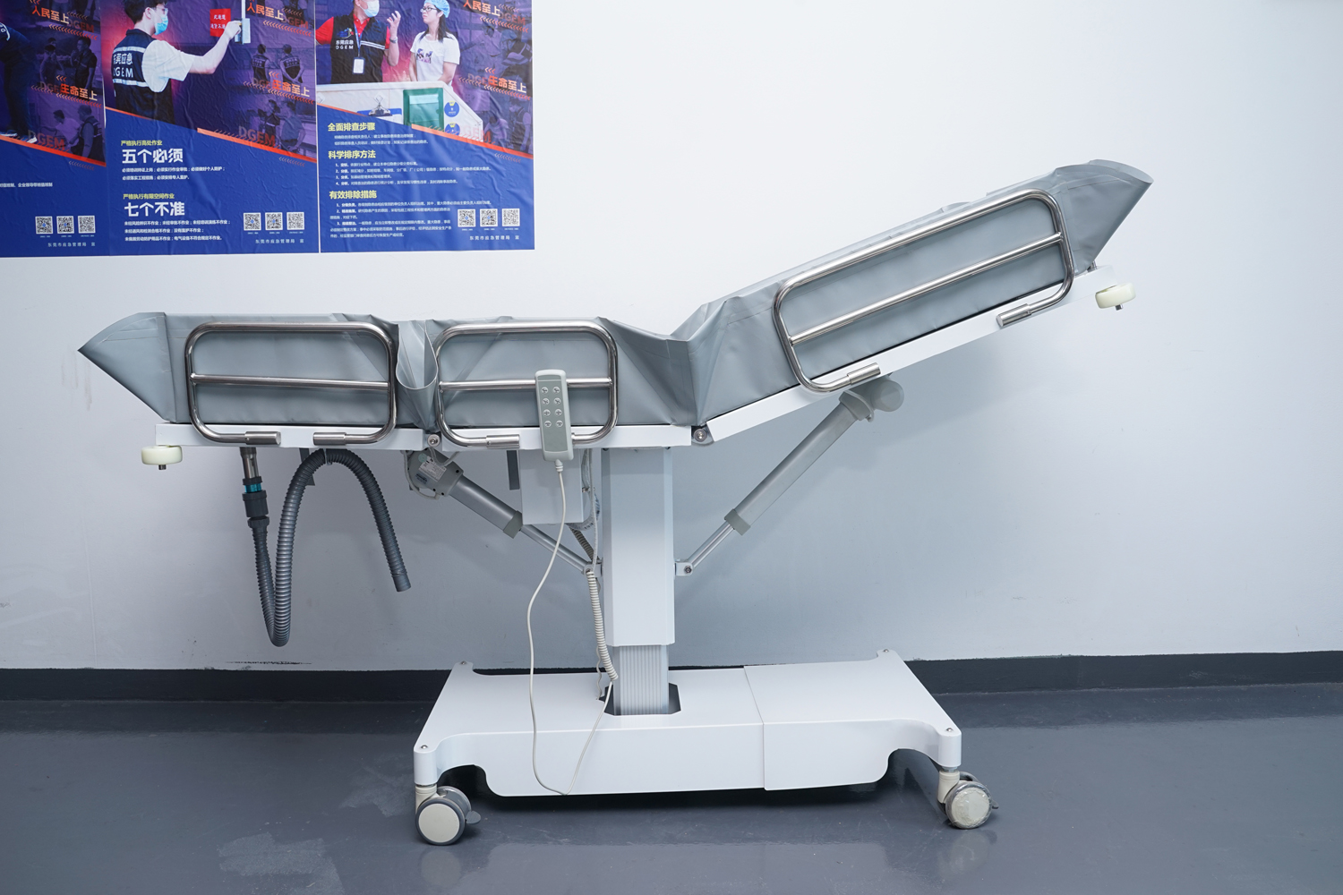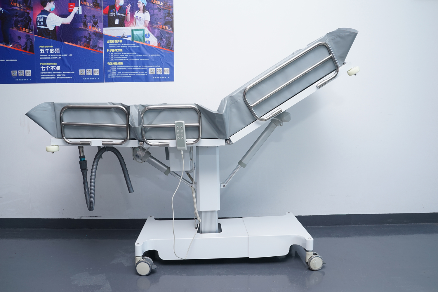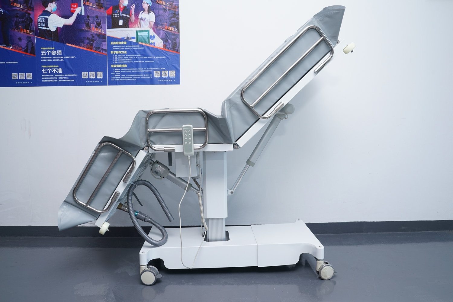 床體電動(dòng)三折折疊,電動(dòng)整體獨(dú)立升降調(diào)節(jié),靠背、腿部各自獨(dú)立電動(dòng)調(diào)節(jié) 可攤開可收縮折疊行走,便于狹小走廊行走及狹小空間洗浴等 電機(jī)功率3*6000-8000N,全部鋰電池24V安全電壓供電,防護(hù)等級:IP54。 配備舒適安全帶,保護(hù)在洗浴及轉(zhuǎn)運(yùn)是浴者安全。 靠背、腿部可根據(jù)浴者舒適度隨意0°--80°調(diào)節(jié)。 護(hù)工操作簡單,調(diào)節(jié)到浴者舒適體位。 框 架:冷板、冷管;