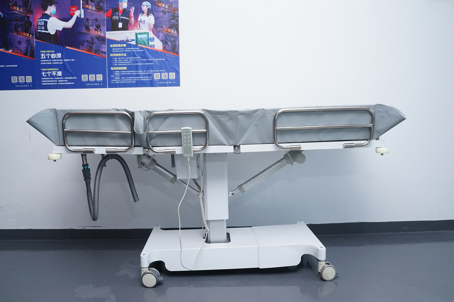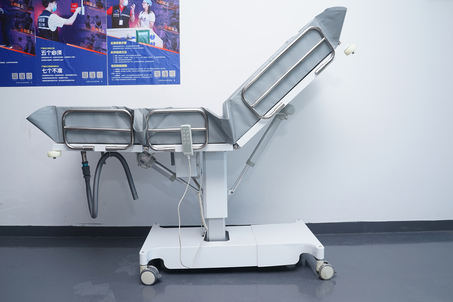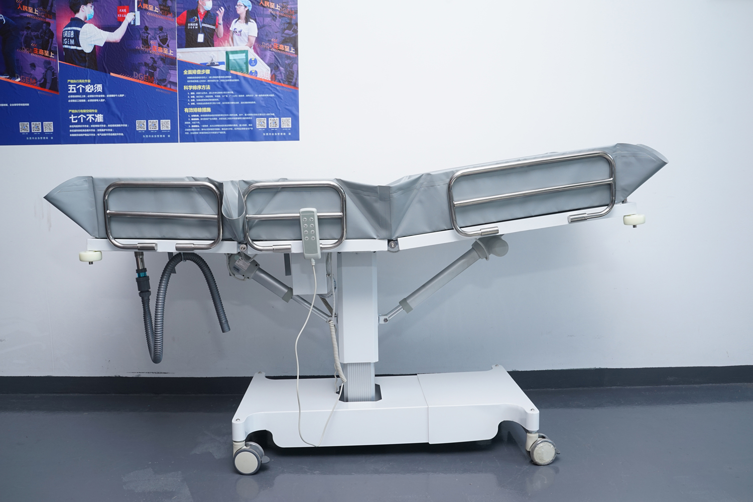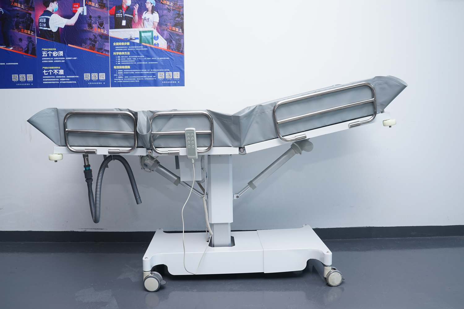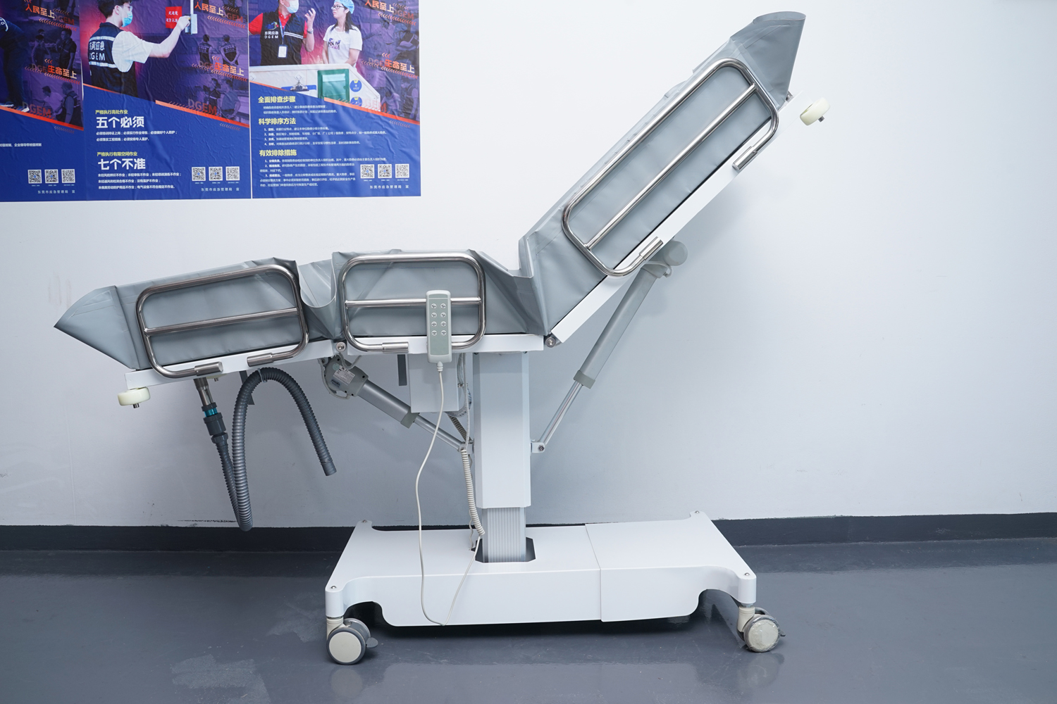 床體電動(dòng)三折折疊,電動(dòng)整體獨(dú)立升降調(diào)節(jié),靠背、腿部各自獨(dú)立電動(dòng)調(diào)節(jié) 可攤開可收縮折疊行走,便于狹小走廊行走及狹小空間洗浴等 電機(jī)功率3*6000-8000N,全部鋰電池24V安全電壓供電,防護(hù)等級:IP54。 配備舒適安全帶,保護(hù)在洗浴及轉(zhuǎn)運(yùn)是浴者安全。 靠背、腿部可根據(jù)浴者舒適度隨意0°--80°調(diào)節(jié)。 護(hù)工操作簡單,調(diào)節(jié)到浴者舒適體位。 框 架:冷板、冷管;