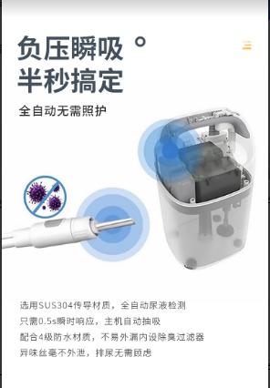 舒享智能集尿器(男士穿貸款),針對尿失禁人群,坐臥姿都可以使用。照顧無需起夜,自動抽吸排尿特點,集尿杯有尿就拍走。