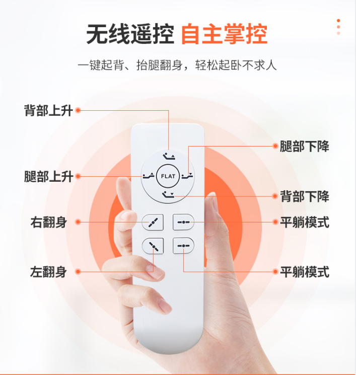 康護(hù)佳電動(dòng)翻身床墊,功能齊全,輕松照護(hù),左右側(cè)翻,抬腿起背、無線遙控、品牌電機(jī),居家專用,適用于各種床。
