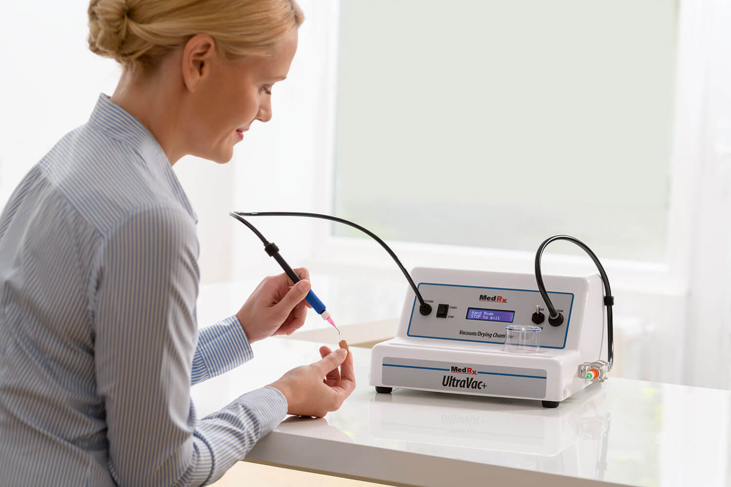 全新升級的UltraVac+助聽器保養(yǎng)儀專為呵護(hù)助聽器而生,外形更加簡潔美觀,除塵和干燥兩大功能獨(dú)立工作。除塵功能分吸塵與除塵兩個手柄,經(jīng)過嚴(yán)格計算的風(fēng)力在確保清潔功能的同時,還能避免損壞助聽器的元器件。干燥功能通過真空進(jìn)行干燥,4分鐘快速干燥,并且在干燥結(jié)束時為避免泄壓過快損傷助聽器,專門進(jìn)行了緩慢泄壓的設(shè)計。設(shè)計的細(xì)節(jié)均為延長助聽器使用壽命,是您做助聽器保養(yǎng)工作的一位優(yōu)秀搭檔。