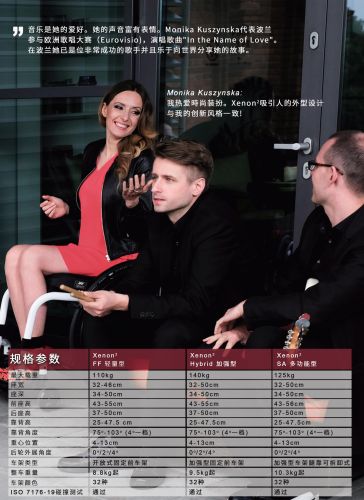 Xenon2 FF 緊湊隱蔽交叉桿設(shè)計(jì),有同剛性車架一樣的前部空間,車身采用炫酷、干凈、流線型設(shè)計(jì); Xenon2 HYBRID 車架雙管設(shè)計(jì),強(qiáng)度可媲美剛性車架,最大承重可達(dá)140kg. Xenon2 SA 強(qiáng)化型骨架搭配可拆卸腿靠,方便轉(zhuǎn)移進(jìn)出輪椅,緊湊式折疊機(jī)構(gòu)方便出行收納存放。