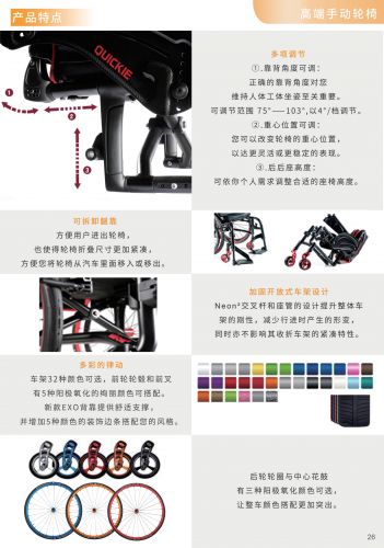 Neon2 是一臺(tái)將個(gè)性化、多功能可調(diào)節(jié)、便攜性融入于現(xiàn)代化設(shè)計(jì)的開放式折疊輪椅,車架的交叉桿和座椅管的加固設(shè)計(jì)給用戶提供了一個(gè)可與剛性車架輪椅媲美的騎乘性能。
