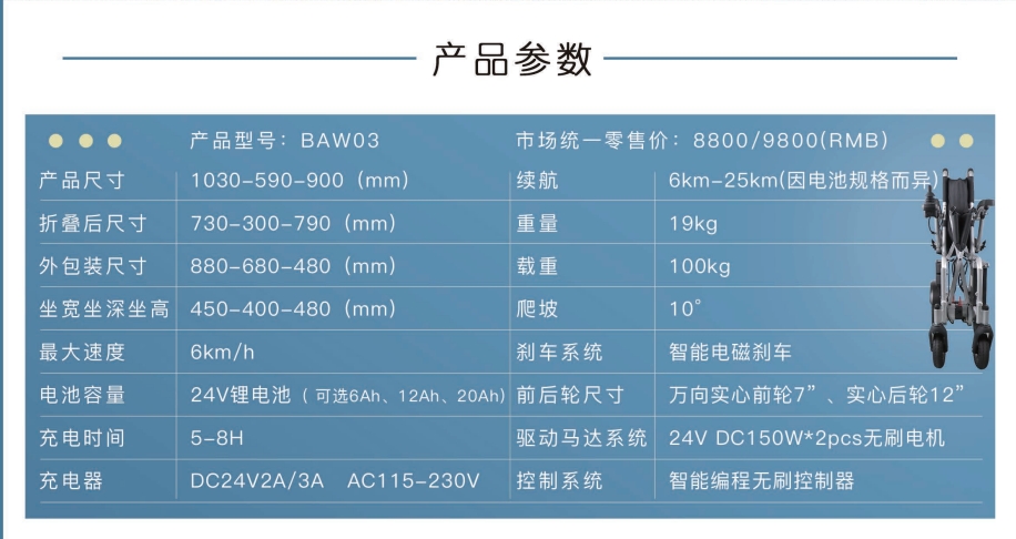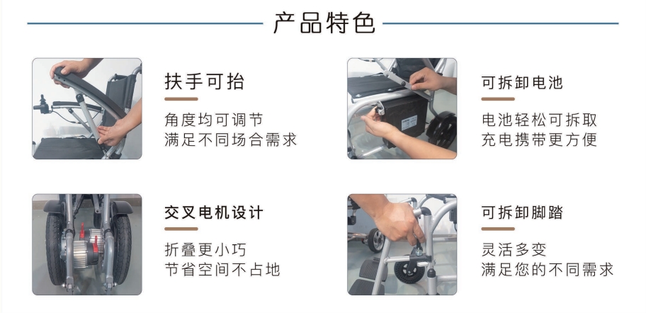 1、鋁合金車身,凈重17公斤 2、快拆式腳踏,方便上下車、移位 3、收合簡(jiǎn)單,免彎腰,可放后備箱 4、專利防后傾輪,二段式設(shè)計(jì),有效防止傾倒、后翻,安全加倍