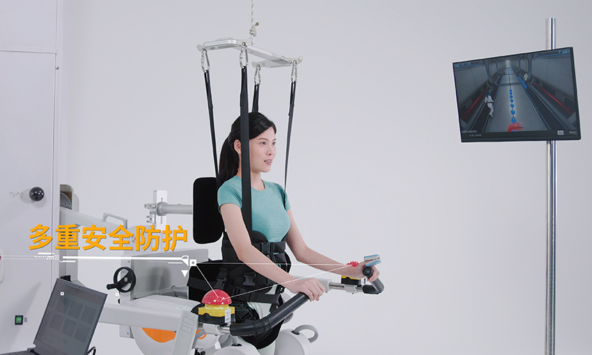 這是一款針對步行功能障礙進行高效康復訓練的下肢康復機器人。產(chǎn)品由計算機控制系統(tǒng)、步態(tài)矯正裝置系統(tǒng)、動靜態(tài)減重系統(tǒng)、醫(yī)用跑臺系統(tǒng)以及情景互動訓練系統(tǒng)五大模塊組成。它可以使患者在直立體位下通過不斷重復且軌跡固定的步態(tài)訓練,強化正常步態(tài)記憶,促進患者本體感覺的輸入與正確運動模式的形成,從而加強大腦結構和功能重塑,建立正確的行走模式并有效的鍛煉其相關肌肉與關節(jié),加速下肢功能的恢復。
