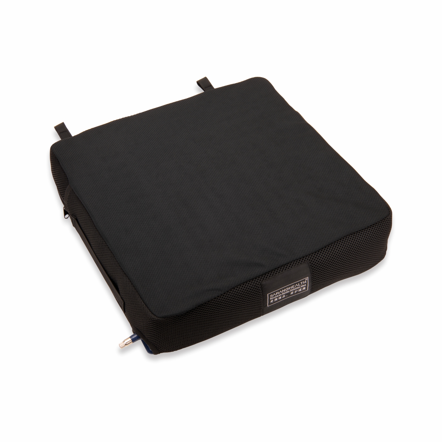 充氣坐墊采用環(huán)保PVC氣囊,內(nèi)置獨立氣囊,氣囊相互連通,易充氣和調(diào)節(jié),依據(jù)空氣流通卸壓原理,能有效預(yù)防壓瘡。左、右獨立氣室的雙氣嘴設(shè)置,不同的截癱患者左右臀部肌肉收縮程度的高低不同,可通過左、右氣嘴調(diào)節(jié)左、右獨立氣室內(nèi)的空氣量,使截癱患者得到最佳的舒適度及減壓平衡效果。坐墊套面層采用透氣滌綸面料,底部PVC防滑革,拉鏈設(shè)置易于清洗。多種尺寸、高度,適合不同輪椅使用者的需求。