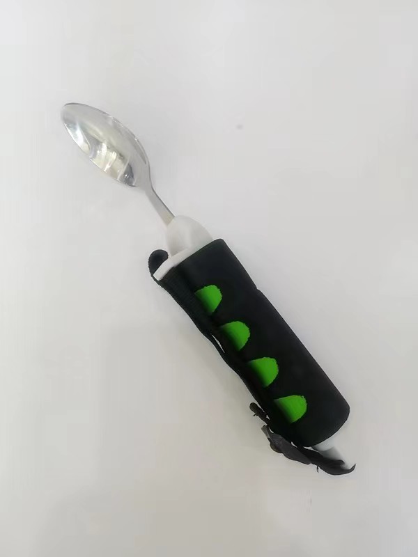 該產(chǎn)品握柄材質(zhì)為防滑材料NBR制成,勺部為不銹鋼。產(chǎn)品間隔設(shè)計(jì)可增加手部與握柄間的摩擦,易于抓握。方便指捏、握力減弱的偏癱患者自行進(jìn)餐。勺柄尾部留有穿戴孔,扣帶采用尼龍材料,柔軟舒適,依靠鋸齒形設(shè)計(jì)調(diào)整扣帶長(zhǎng)度,有效避免因長(zhǎng)時(shí)間配戴產(chǎn)生的不適感。3.5*8*23.5cm。適用于握力喪失及握力不足人群。