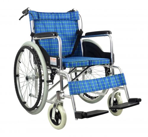 鋁合金車架,表面鋁氧化,牛津紡布座背墊、硬座,ABS手圈、踏板,帶后手閘,8"前輪,24"后輪,附安全帶。