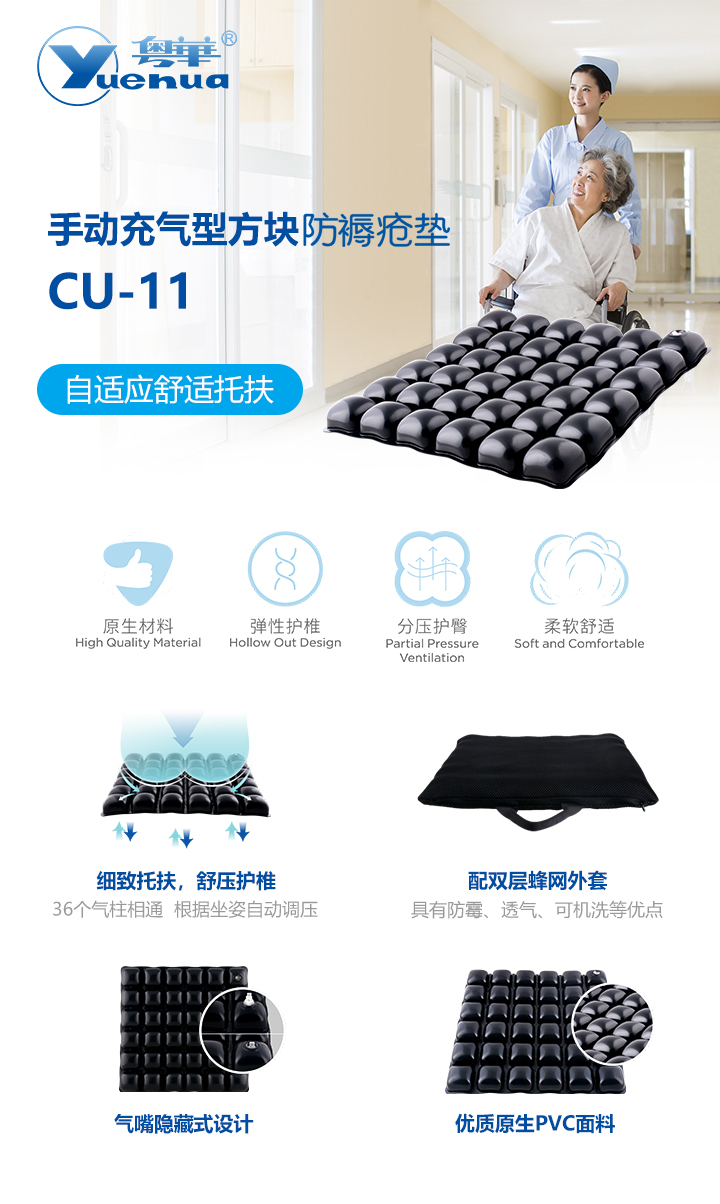 用于術(shù)后或長(zhǎng)期坐臥患者,預(yù)防和緩解壓瘡。