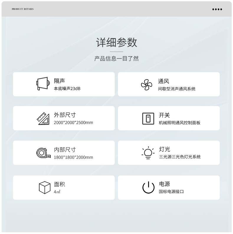 型號:L200 隔聲:室外環(huán)境噪聲≤55dB (A),室內本底噪聲≤23dB (A) 環(huán)保:甲醛釋放量≤0.4mg/L,滿足《室內裝飾裝修材料及人造板棉制品中甲醛釋放量》 參考標準: JJF 1191-2019《測聽室聲學特性校準規(guī)范》 GB 3096-2022《聲環(huán)境質量標準》 GB 50325-2020《民用建筑工程室內環(huán)境污染控制標準》 適用范圍:純音測聽、聲場評估、阻抗/眩暈檢測