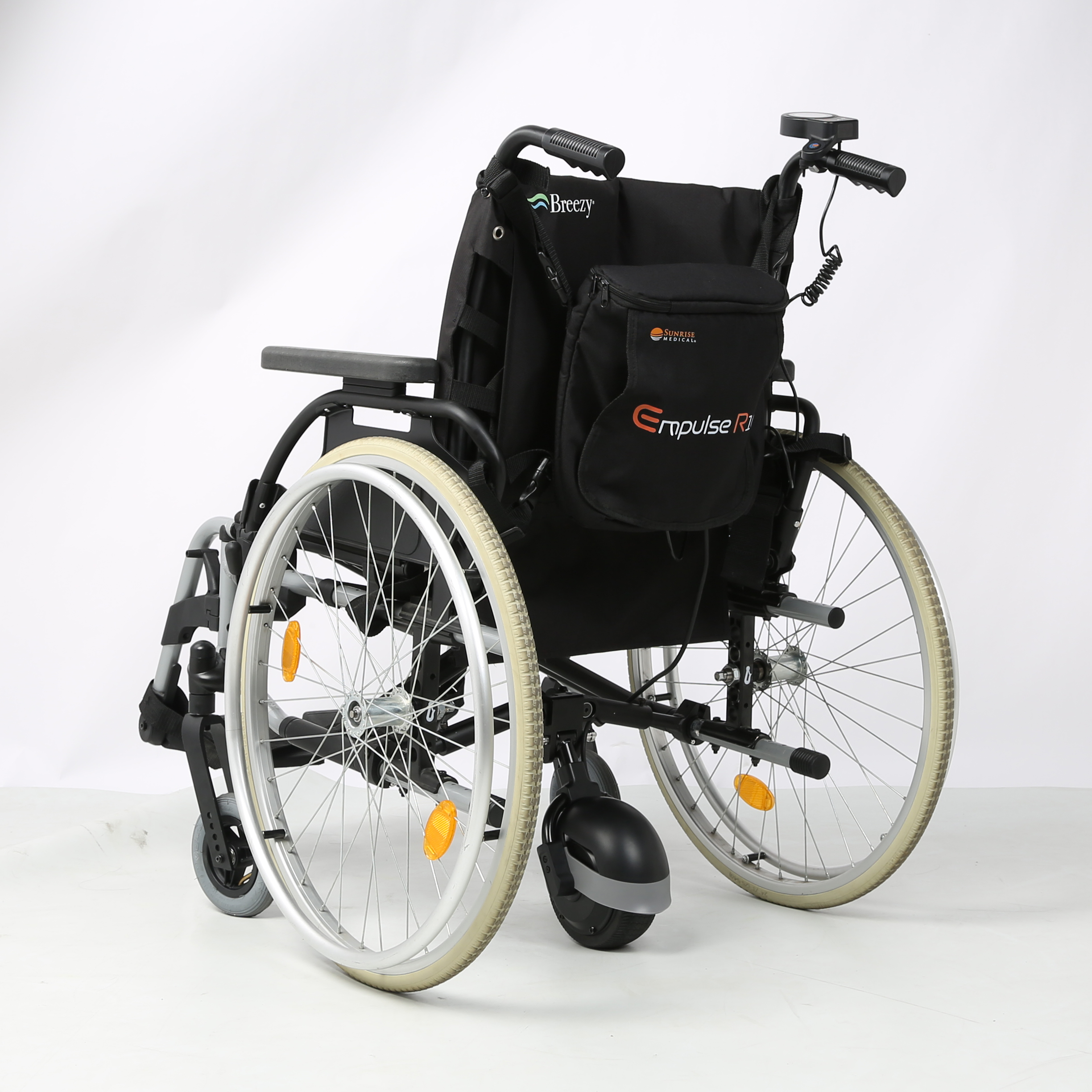 新款Empulse R10輪椅助推器 讓老年人的出行和看護(hù)照料者的推行變得非常簡單 關(guān)鍵時候,助你一臂之力 R10提供兩種助推模式 - 自動助力模式:當(dāng)照看者握住后扶手時,系統(tǒng)自動解鎖,無需按下助力按鈕輔助推動輪椅,系統(tǒng)會根據(jù)輪椅當(dāng)前的速度產(chǎn)生助推效果;用戶行走速度越快,助推效果越大。恒速助力模式:當(dāng)照看者按下控制器旁邊助力按鈕后,輪椅會逐漸增大動力,將以當(dāng)前選定的速度移動,有利于上坡或過坎。