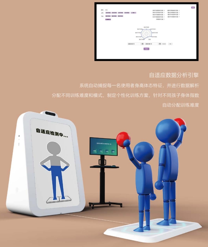 肢體協(xié)調(diào)互動訓(xùn)練系統(tǒng)采用自適應(yīng)學(xué)習(xí)引擎、數(shù)據(jù)分析引擎等核心技術(shù),對兒童的上下肢以及體態(tài)進(jìn)行全面評估與針對性訓(xùn)練。 系統(tǒng)內(nèi)置評估功能,康復(fù)師可針對每一名兒童進(jìn)行系統(tǒng)評估,例如:上下肢肌力平衡性、協(xié)調(diào)性等進(jìn)行科學(xué)的評估。大數(shù)據(jù)引擎可對評估結(jié)果進(jìn)行對比與分析,自動生成評估報告,各項功能指標(biāo)數(shù)據(jù)化、圖形化,一目了然,方便康復(fù)師查詢、導(dǎo)出與存檔。