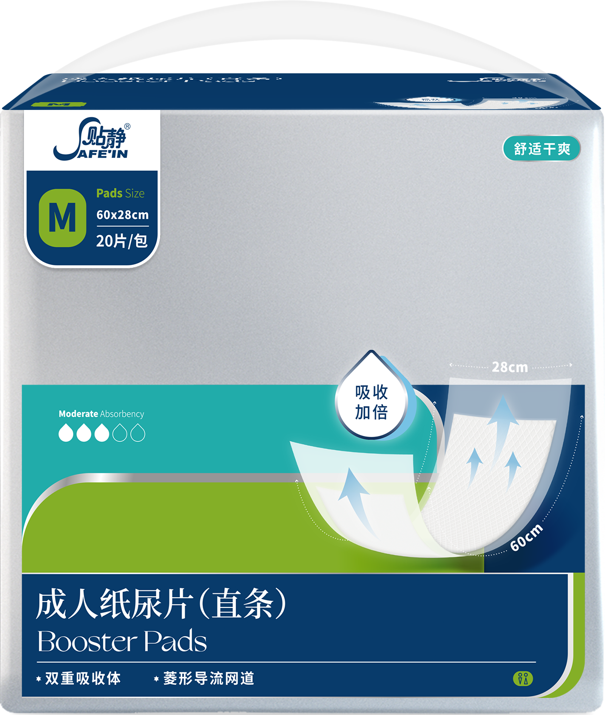 ① 舒爽瞬吸芯體:美國進(jìn)口紙漿搭配高吸水SAP,瞬吸鎖水低回滲 ② 親膚柔護(hù)面層:親水無紡布面層 不起坨不拉絲,減輕肌膚負(fù)擔(dān) 干爽零觸感③ 加長易粘背膠:采用加長背膠 抗?jié)衲蜔?,貼合牢固 不易移位 ④ T型防漏護(hù)圍:觸感舒適 有效防止側(cè)漏