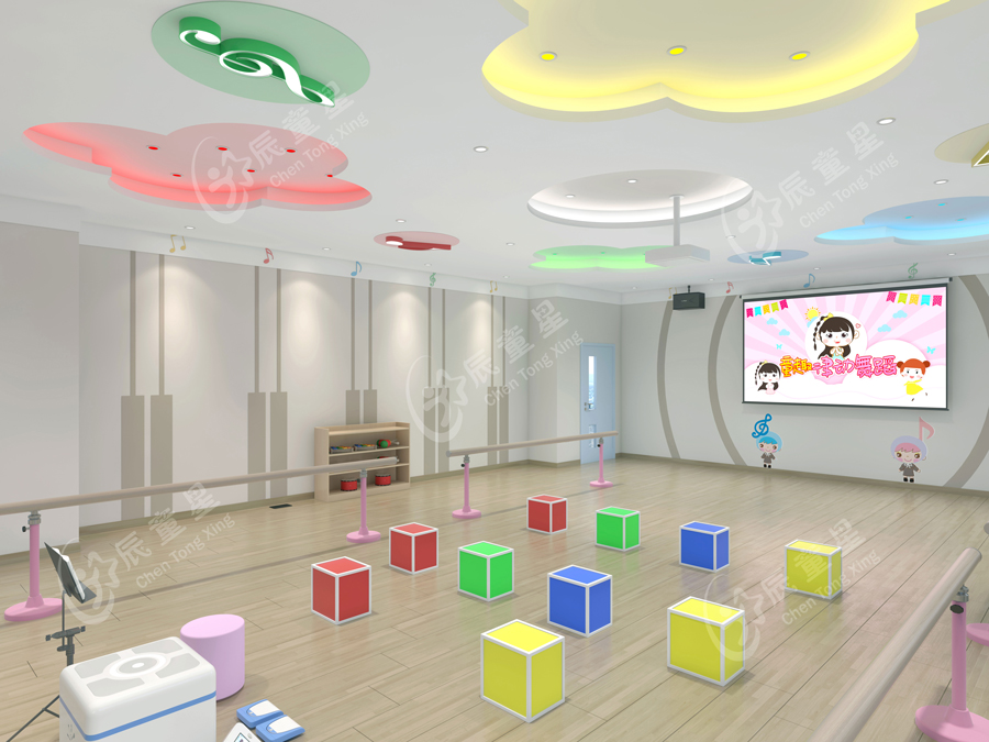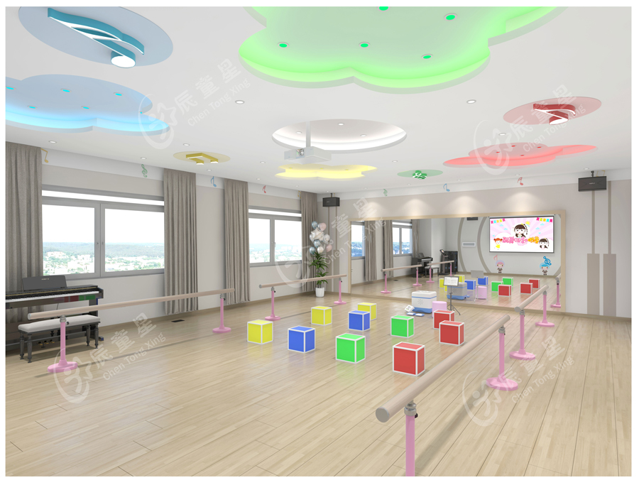 音樂律動室是聽障、盲障、智力障礙學(xué)生進(jìn)行舞蹈、體操、游戲、音樂教學(xué)及其它藝術(shù)活動的場所,其環(huán)境設(shè)計有利于特殊學(xué)生通過視覺和殘余聽力模仿動作、感受舞蹈的音樂節(jié)奏。律動教室通過訓(xùn)練學(xué)生的視、聽、觸等綜合能力,使其注意力、記憶力、感知力、結(jié)構(gòu)化能力得到加強(qiáng)。
