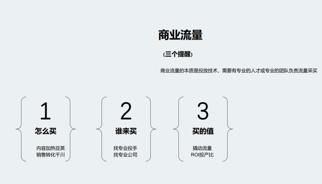 此外,自然流量是不固定的,必須配合商業(yè)流量(投放流量)來做,才能達到效果最大化。