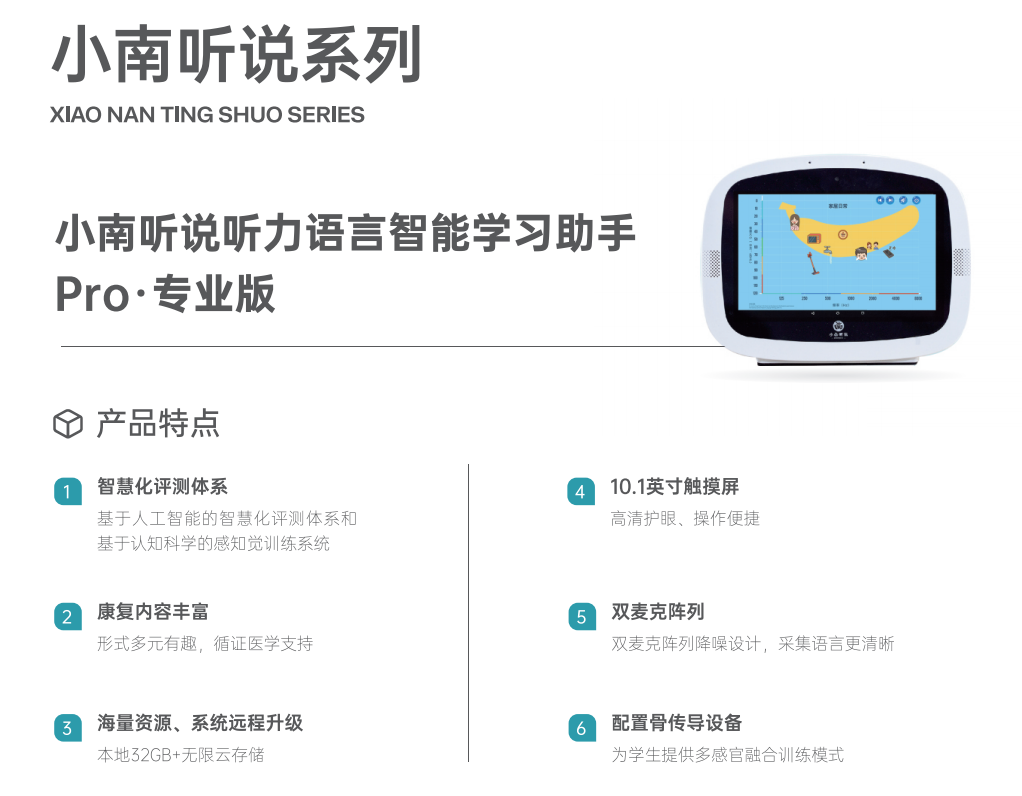 一款針對(duì)聽(tīng)力和言語(yǔ)語(yǔ)言障礙用戶的智能康復(fù)產(chǎn)品,搭載了當(dāng)前最好的人工智能和認(rèn)知神經(jīng)科學(xué)技術(shù),集成了數(shù)百種聽(tīng)力語(yǔ)言強(qiáng)化課程、測(cè)試、練習(xí)、教學(xué)動(dòng)畫(huà)、訓(xùn)練游戲、基于人工智能和語(yǔ)音技術(shù)的訓(xùn)練工具、交流障礙溝通助手等功能。