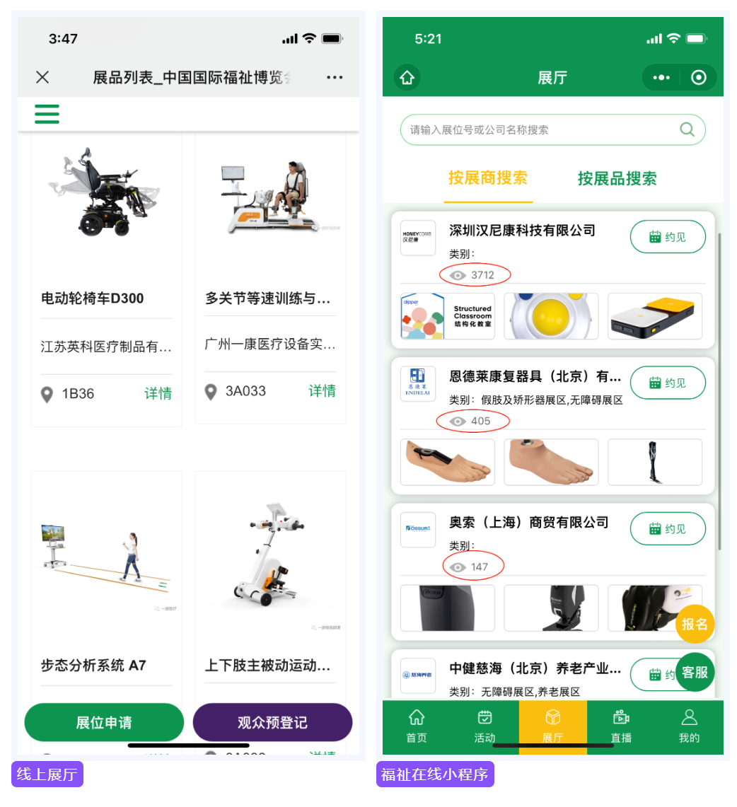 官方線上展廳及“福祉在線”小程序年訪問量高達50萬+,全面呈現(xiàn)嚴選福祉、康復(fù)行業(yè)好產(chǎn)品、新技術(shù), 幫助展商企業(yè)從行業(yè)中脫穎而出。