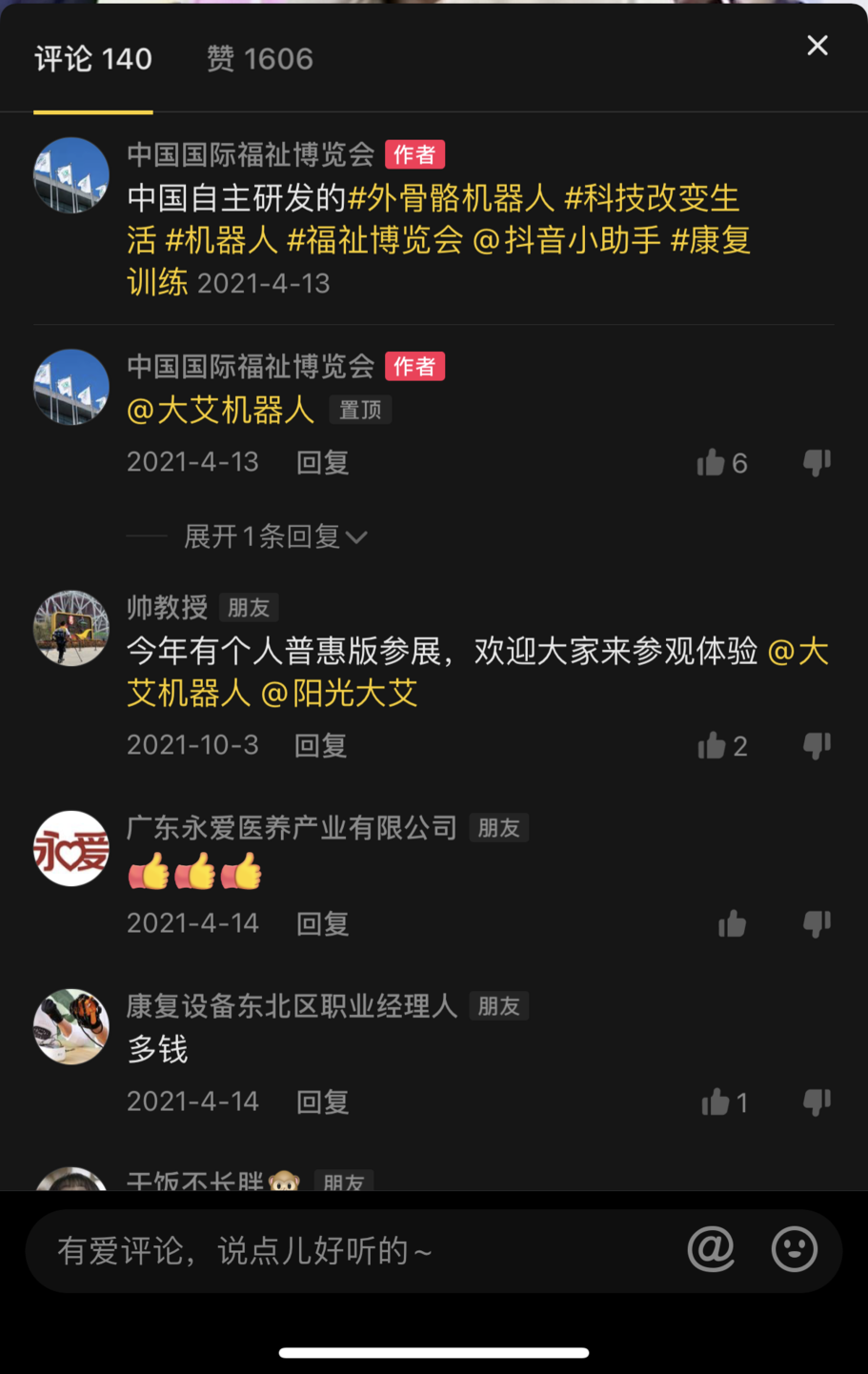 CR Expo通過抖音號發(fā)布大艾機器人部分新品,視頻瀏覽量達10萬+,互動量達200+,產(chǎn)品獲得了機構(gòu)用戶及個人用戶的關(guān)注。