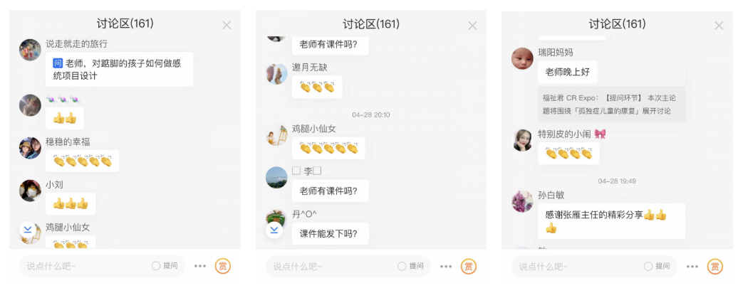 本期直播吸引了來自全國各地的兒童醫(yī)院、婦幼保健院、康復中心、兒童康復訓練機構、福利院、特殊教育學校等4000+觀眾在線觀看,互動評論160+,學習熱情高漲,反響熱烈。