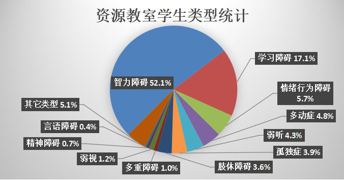 經過對全國范圍資源教室覆蓋學生障礙類型、數(shù)量的統(tǒng)計,結果如下:
