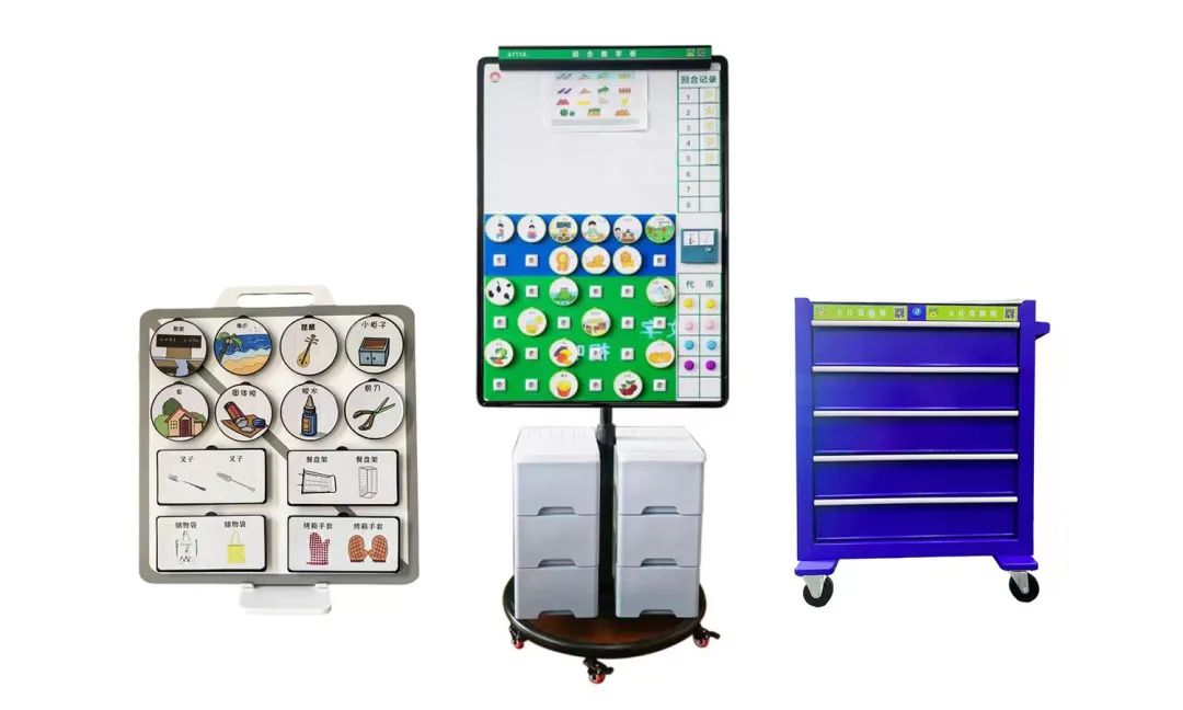 應(yīng)用場所:康復(fù)中心、干預(yù)中心、語訓(xùn)中心、介入工作室、培智學(xué)校。本產(chǎn)品在結(jié)構(gòu)化工作原理的基礎(chǔ)上,采用視覺支持,使用產(chǎn)品結(jié)構(gòu)的模塊化組合方式以及具有獨(dú)創(chuàng)的磁吸交流圖卡,方便更換進(jìn)行結(jié)構(gòu)化教學(xué),一通過教授孩子新知識(shí)、新技能和新行為,讓他們適應(yīng)環(huán)境,適應(yīng)社會(huì),二是通過對(duì)環(huán)境的改變和對(duì)活動(dòng)流程的構(gòu)建等輔助手段,提高他們對(duì)環(huán)境的理解和適應(yīng)能力。
