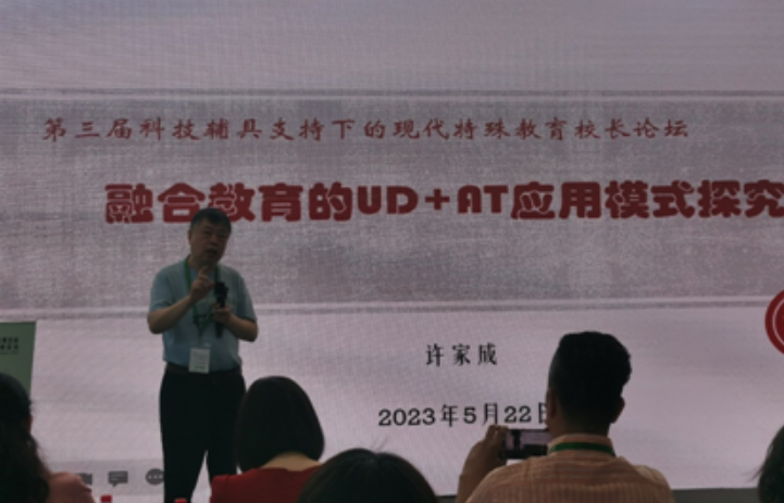 融合教育作為一種新的教育模式,正在逐漸成為特殊教育發(fā)展的趨勢(shì),通過跨學(xué)科融合、技術(shù)融合、文化融合和實(shí)踐融合等方式,更好地滿足學(xué)生多元化的教育需求,本屆論壇聚焦“融合教育背景下的UDL+AT的應(yīng)用”,邀請(qǐng)國內(nèi)該領(lǐng)域開展研究與探索的校長(zhǎng)們分享融合教育成果與經(jīng)驗(yàn),共同探討更加美好的發(fā)展前景。許家成教授首先進(jìn)行了“通用設(shè)計(jì)學(xué)習(xí)與科技輔具在融合教育中的應(yīng)用”的主旨報(bào)告,他指出,在實(shí)際教學(xué)中,通用學(xué)習(xí)設(shè)計(jì)能夠充分體現(xiàn)關(guān)注個(gè)體、惠及全體學(xué)生的教育理念,輔助技術(shù)則讓特殊兒童教育成為可能,使教學(xué)更為有效。為此,需要推進(jìn)IESP引領(lǐng)下的UD&AT支持模式的實(shí)際運(yùn)用,并提出科技輔具支持下的現(xiàn)代特殊教育是教育質(zhì)量提升的有效途徑之一。