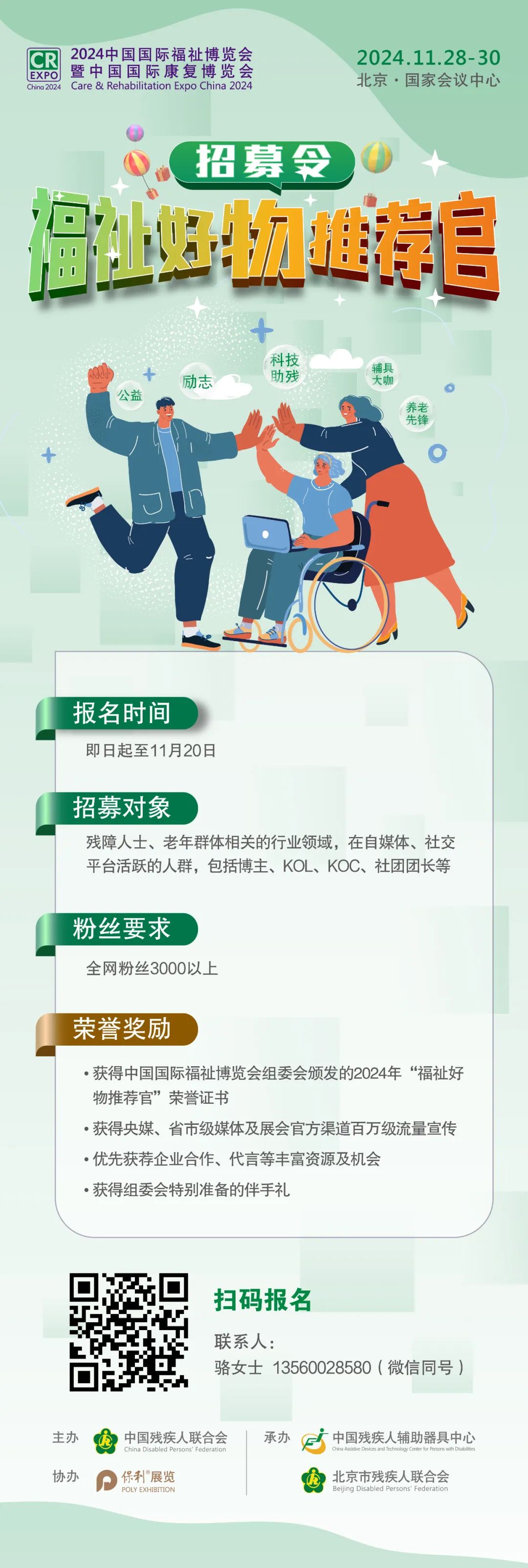 2024年11月28-30日,由中國殘疾人聯(lián)合會主辦,中國殘疾人輔助器具中心與北京市殘疾人聯(lián)合會承辦,保利展覽協(xié)辦的中國國際福祉博覽會暨中國國際康復(fù)博覽會(CR EXPO)將在北京·國家會議中心舉行。