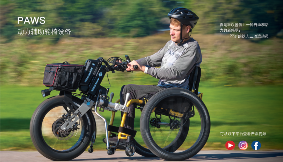 PAWS是一款全新的輪椅牽引裝置。PAWS將人機工程學與實用性功能相結(jié)合,將手動輪椅轉(zhuǎn)變?yōu)榱钊伺d奮的電動交通工具,讓用戶以自由的生活方式享受生活,借助它獨立地上班、購物或進行其他活動。