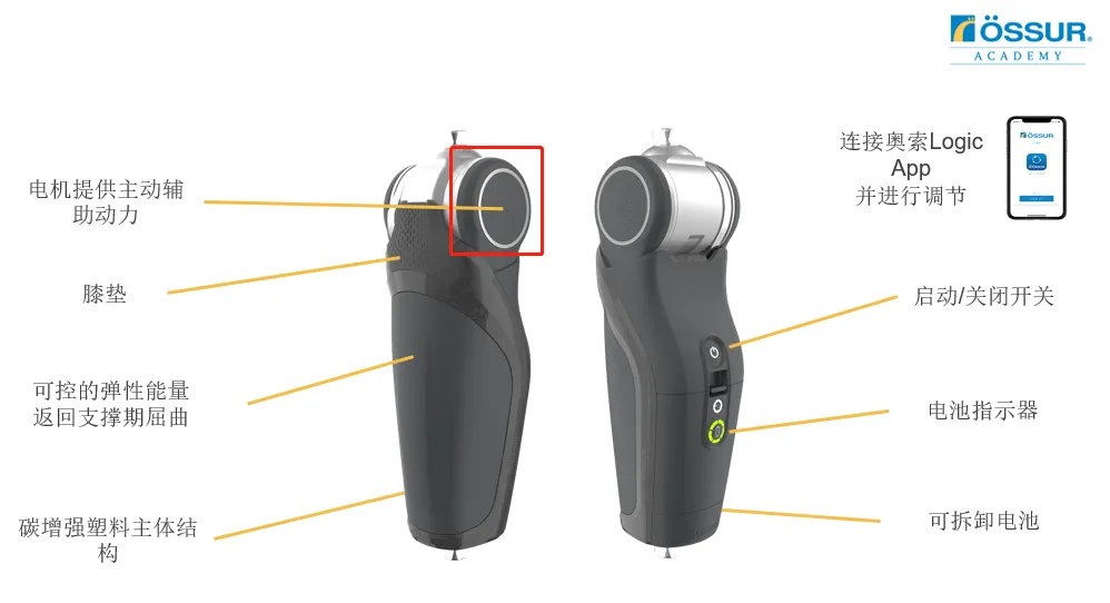 盤古主動力膝關(guān)節(jié)(Power Knee) 是世界上第一款電機驅(qū)動的微處理器膝關(guān)節(jié)。主動輔助裝置為屈曲和伸展提供動力,以模擬向心和離心肌肉活動。先進(jìn)的傳感器可準(zhǔn)確檢測用戶的動作,然后通知微處理器,從而利用最先進(jìn)的算法,使膝關(guān)節(jié)能夠響應(yīng)用戶需求。強勁的電機可提供一致的站立相和自由擺動相。站立時提供主動伸展,下坡時提供受控阻尼,行走時提供主動屈曲和伸展,以及能量復(fù)歸站立屈曲,盤古主動力膝關(guān)節(jié)(Power Knee )因此可以促進(jìn)重量對稱分布和自然步態(tài)。