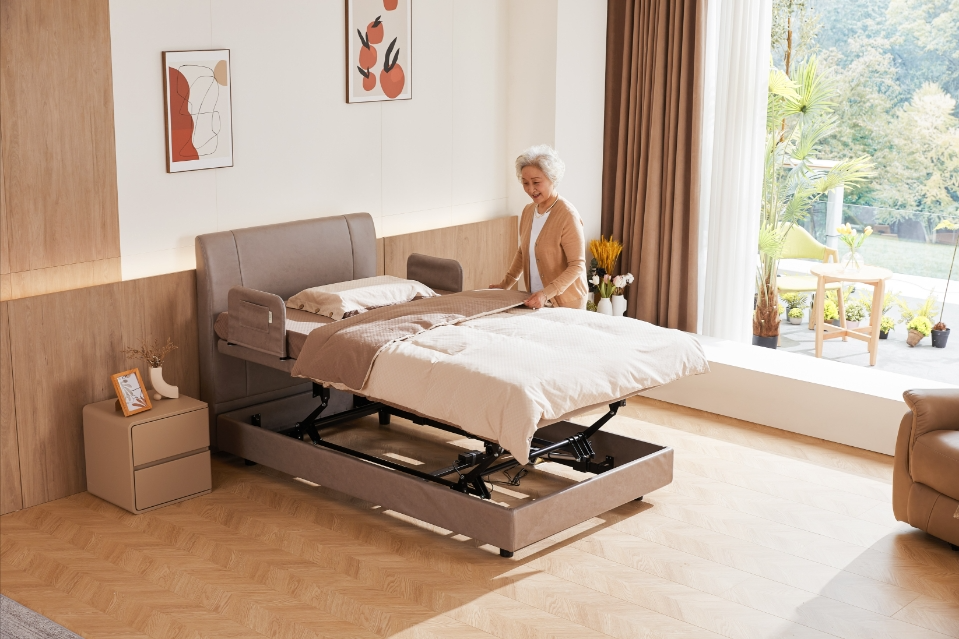 世道為老年提供不同任命周期的提升睡眠品質(zhì)的智能電動床,包括給活力老人 lifestyle base, 輕介護(hù)階段的居家養(yǎng)老床,還有重度照護(hù)的養(yǎng)老床,以及年輕人的居家電動床。