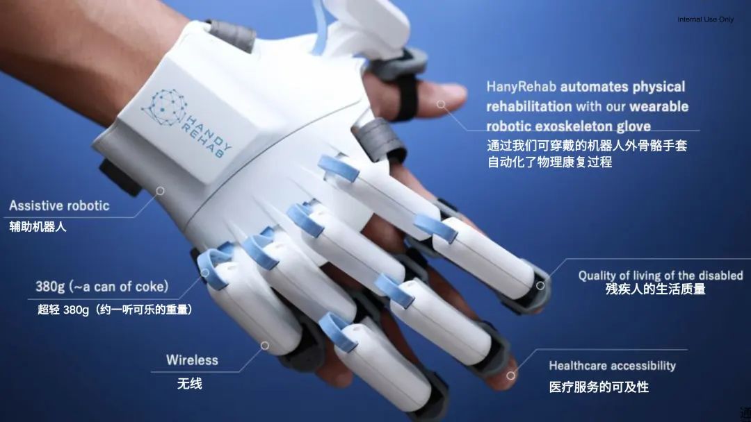 HANDYREHAB HandyGlove是一款智能機(jī)器人手套系統(tǒng),已獲得專利并經(jīng)過臨床驗(yàn)證,可幫助中風(fēng)康復(fù)患者恢復(fù)高達(dá)90%的完全運(yùn)動(dòng)控制能力。這是一款便攜式輔助設(shè)備,能夠幫助殘疾人士完成日常任務(wù),例如拿起一杯水。
