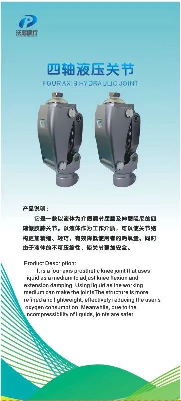 它是一款以液體為介質(zhì)調(diào)節(jié)屈膝及伸展阻尼的四軸假肢膝關節(jié)。以液體作為工作介質(zhì),可以使關節(jié)結構更加精細、輕巧,有效降低使用者的耗氣量。同時由于液體的不可壓縮性,使關節(jié)更加安全。