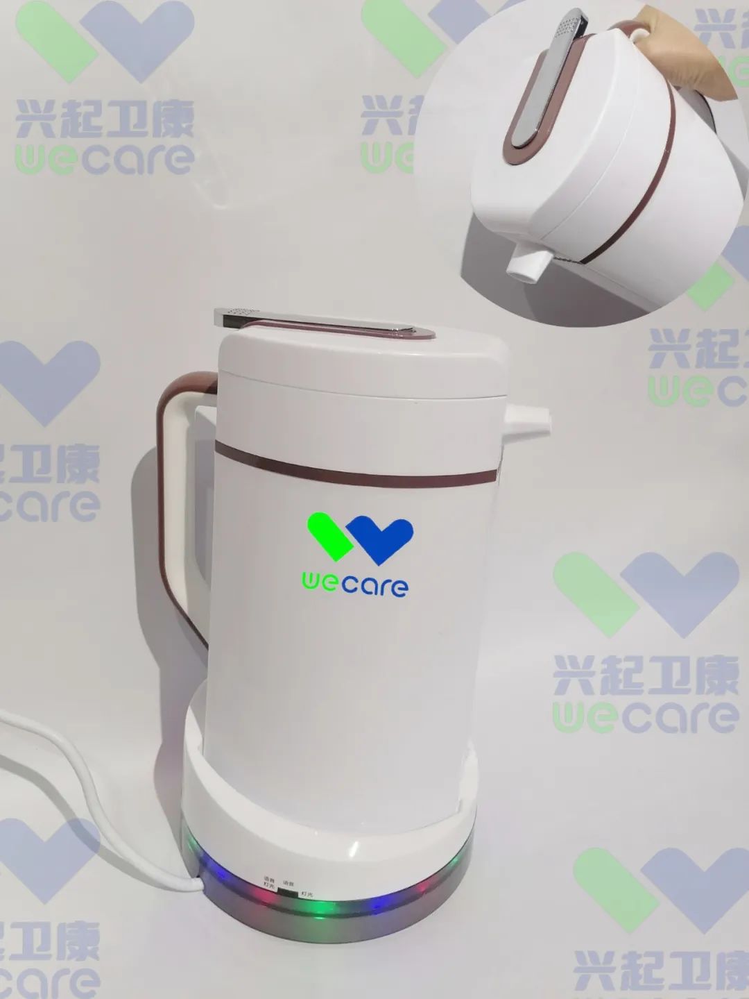具有防外漏功能,壺口采用旋轉(zhuǎn)式密封封口,傾倒時(shí)水不外漏;加熱器底座設(shè)有喇叭,設(shè)有LED燈圈,水壺?zé)o論在接通電源、進(jìn)行加熱時(shí),以及加熱結(jié)束時(shí)都會(huì)有相應(yīng)的強(qiáng)光提示;報(bào)警器模式有單語(yǔ)音模式、單閃光模式和閃光+語(yǔ)音三種模式。