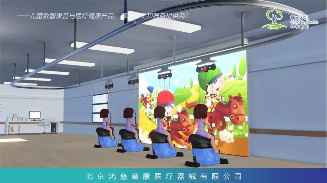 虛擬與現(xiàn)實馬術(shù)動態(tài)康復(fù)訓(xùn)練系統(tǒng)簡稱“馬術(shù)康復(fù)訓(xùn)練系統(tǒng)”,該系統(tǒng)模擬不同狀態(tài)下馬匹不同動作的律動及頻率,并結(jié)合虛擬的情景互動訓(xùn)練系統(tǒng),模仿馬匹行走、奔跑、跳躍、前仰、后翻等動作變化,模擬森林、河流、海邊的自然環(huán)境變化,實現(xiàn)快樂狀態(tài)下的沉浸式運動康復(fù)訓(xùn)練,針對生理、心理、認知、社會化及行為上有問題的人群進行康復(fù)訓(xùn)練,以達到放松肌張力、提高協(xié)調(diào)性加速功能恢復(fù)進程,對偏癱、腦癱、肢體運動功能障礙、發(fā)育遲緩、多動癥、孤獨癥、感覺統(tǒng)合功能的調(diào)整增加新的康復(fù)元素。
