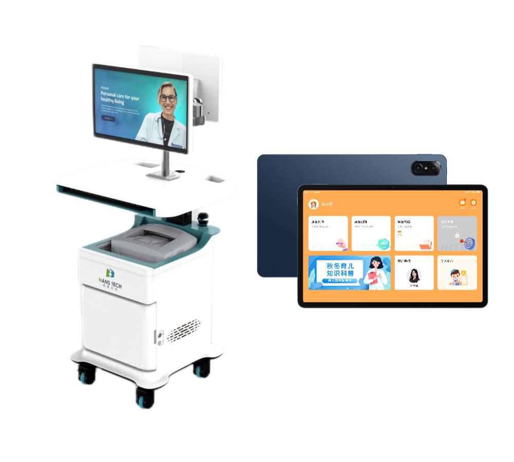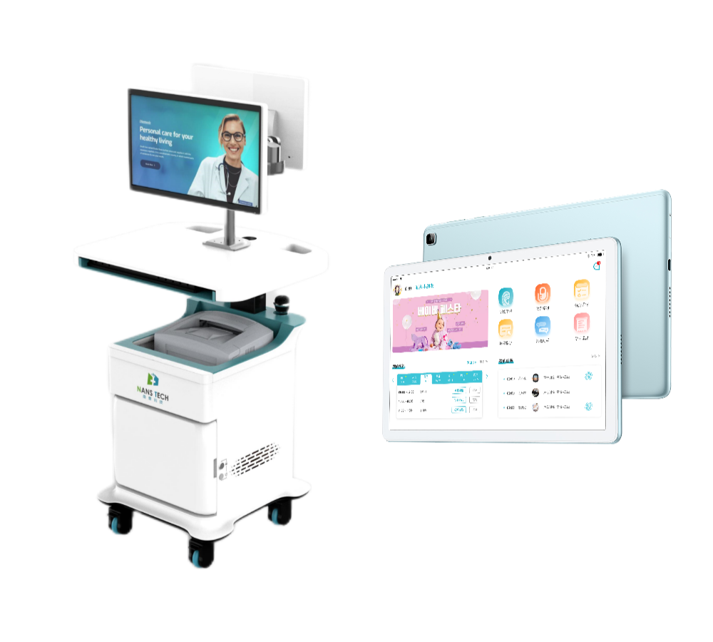 孤獨(dú)癥評(píng)估與康復(fù)系統(tǒng)由數(shù)字康復(fù)管理平臺(tái)(醫(yī)療級(jí)推車)及多臺(tái)康復(fù)終端設(shè)備組成,適用于孤獨(dú)癥譜系障礙及相關(guān)發(fā)育障礙患者的篩查、評(píng)估和康復(fù)治療。本系統(tǒng)搭載了一系列專業(yè)的篩查評(píng)估工具,創(chuàng)新性地采用“基于測(cè)評(píng)結(jié)果智能匹配個(gè)別化康復(fù)計(jì)劃”的解決方案,契合并滿足了高效評(píng)估、臨床康復(fù)、居家訓(xùn)練、康復(fù)管理等場景的需求,切實(shí)提升了康復(fù)服務(wù)的效率和效果。