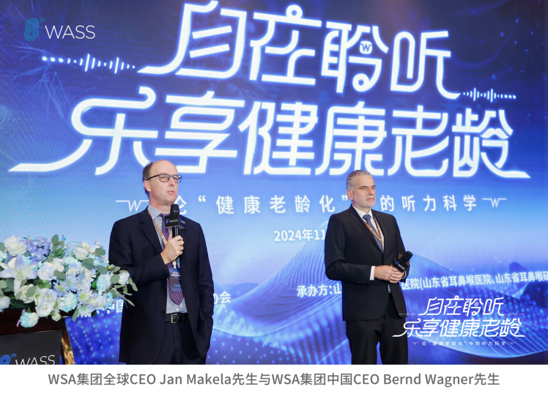 上午9時(shí)整,會(huì)議正式開(kāi)始,承辦方代表山東省耳鼻喉醫(yī)院名譽(yù)院長(zhǎng)王海波教授、主辦方代表中國(guó)電子音響行業(yè)協(xié)會(huì)助聽(tīng)行業(yè)分會(huì)會(huì)長(zhǎng)黃治物教授先后講話致辭。隨后,WSA集團(tuán)全球CEO Jan Makela先生與WSA集團(tuán)中國(guó)CEO Bernd Wagner先生致大會(huì)開(kāi)幕詞,第八屆WASS交流會(huì)自此正式拉開(kāi)帷幕。
