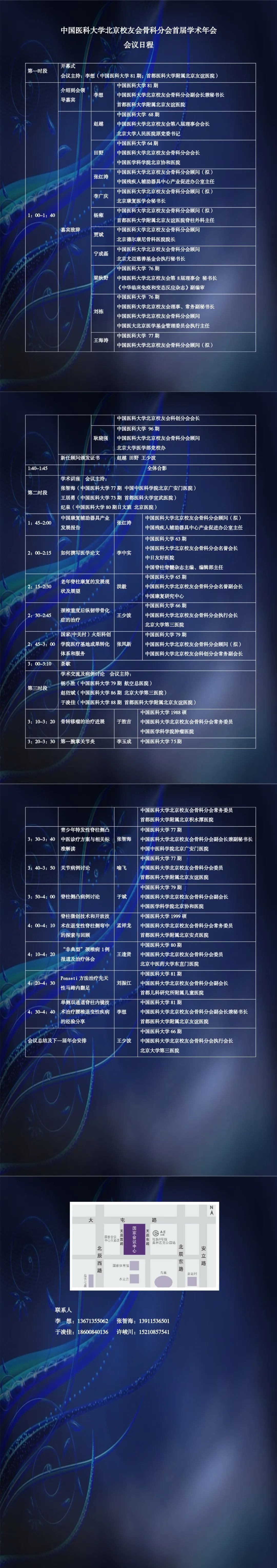 中國(guó)醫(yī)科大學(xué)北京校友會(huì)骨科分會(huì)會(huì)長(zhǎng)田野教授、執(zhí)行會(huì)長(zhǎng)王少波教授,代表骨科分會(huì)全體委員誠(chéng)摯邀請(qǐng)所有在北京工作的中國(guó)醫(yī)科大學(xué)校友參加本次學(xué)術(shù)活動(dòng),共同為校友會(huì)以及骨科分會(huì)的發(fā)展貢獻(xiàn)智慧和力量。同時(shí)也歡迎骨科相關(guān)專(zhuān)業(yè)人員積極參會(huì)(會(huì)議日程附后)。大會(huì)主委會(huì)全體人員期待您的光臨。
