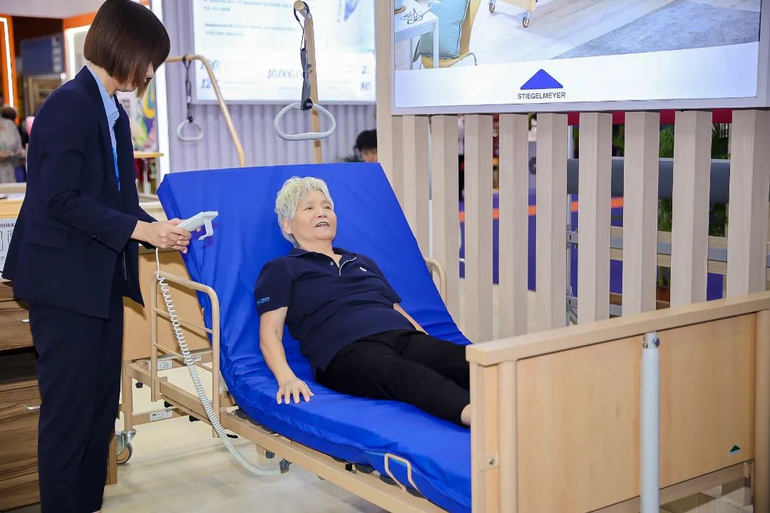 可升降的電動(dòng)護(hù)理床、洗浴床,輕松實(shí)現(xiàn)轉(zhuǎn)移的移位機(jī),防褥瘡坐墊、床墊,成人紙尿褲,長(zhǎng)者陪伴機(jī)器人……方便日常照護(hù)。