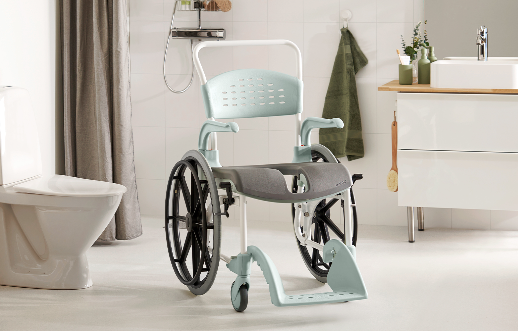 Etac Clean 24"是一款自推型的移動(dòng)式浴廁多功能椅,操作方便,適合那些能獨(dú)立操作椅子進(jìn)衛(wèi)生間并渴望獨(dú)自完成沐浴坐便需求的人使用。它兼具洗澡椅、坐便椅、馬桶增高椅和室內(nèi)輪椅四合一的功能特點(diǎn),整體車架一根鋼管設(shè)計(jì),無(wú)任何焊接,保證了在浴室環(huán)境中不被腐蝕和氧化。Etac Clean的大車身設(shè)計(jì),使用者可以利用它來(lái)方便的完成空間轉(zhuǎn)移的需求。